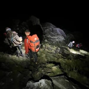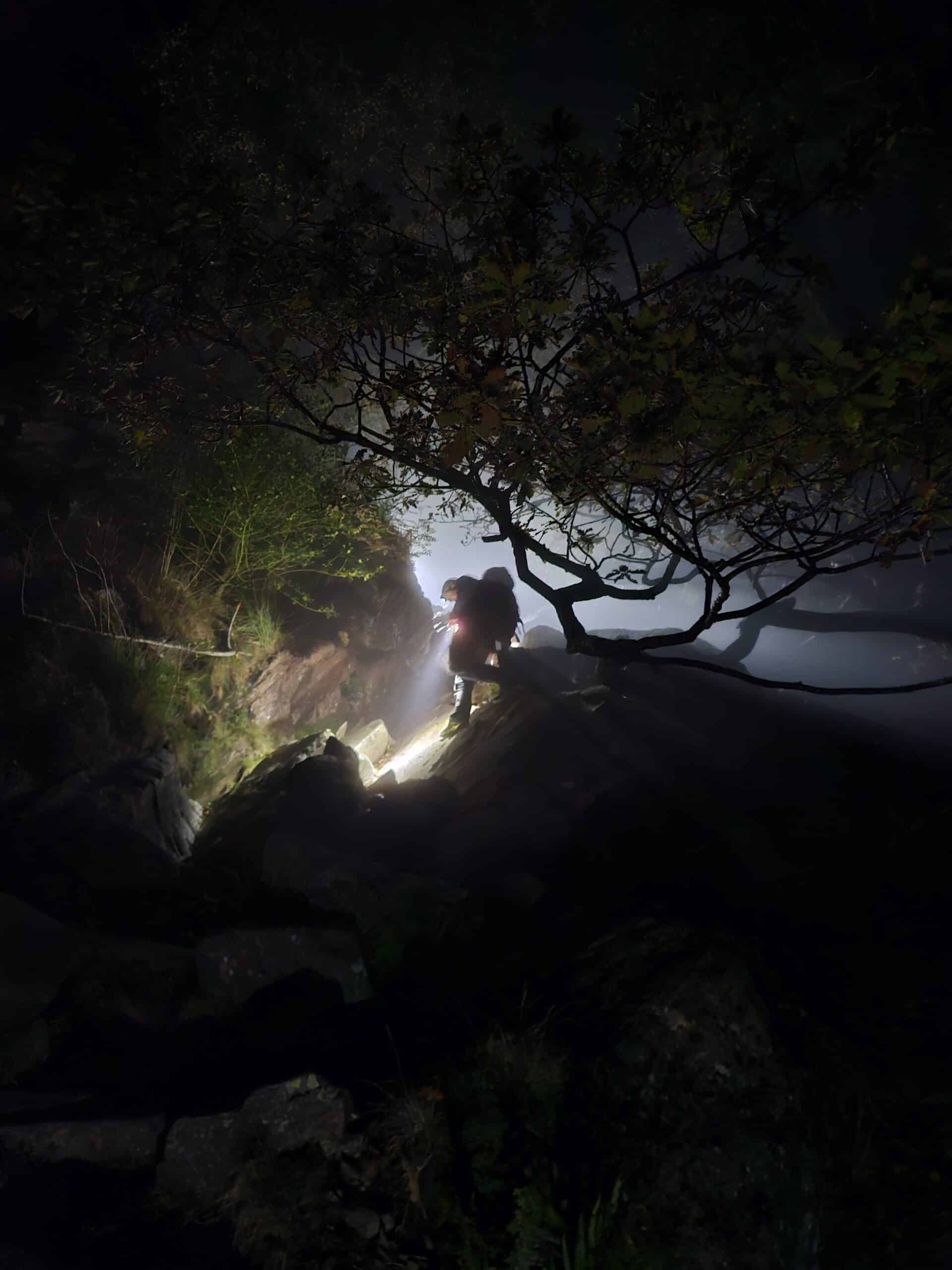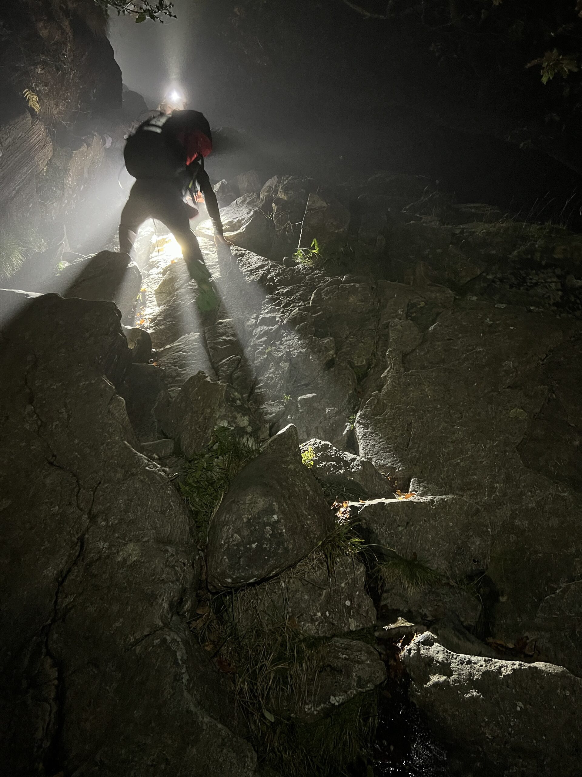 A couple of walkers were enjoying the glorious sunshine above the inversion on Green Gable – perhaps longer than they should have. Deciding they had better get a move on as daylight was fading they unfortunately took a wrong turn, and rather than taking the easier path down to Gillercombe, they ended up on steep terrain on the nose of Base Brown, in darkness and without torches. Concerned about ending up in a really tricky situation if they continued, they sensibly made a call for assistance. A small Keswick team attended and where necessary back roped the very apologetic couple to safer ground.