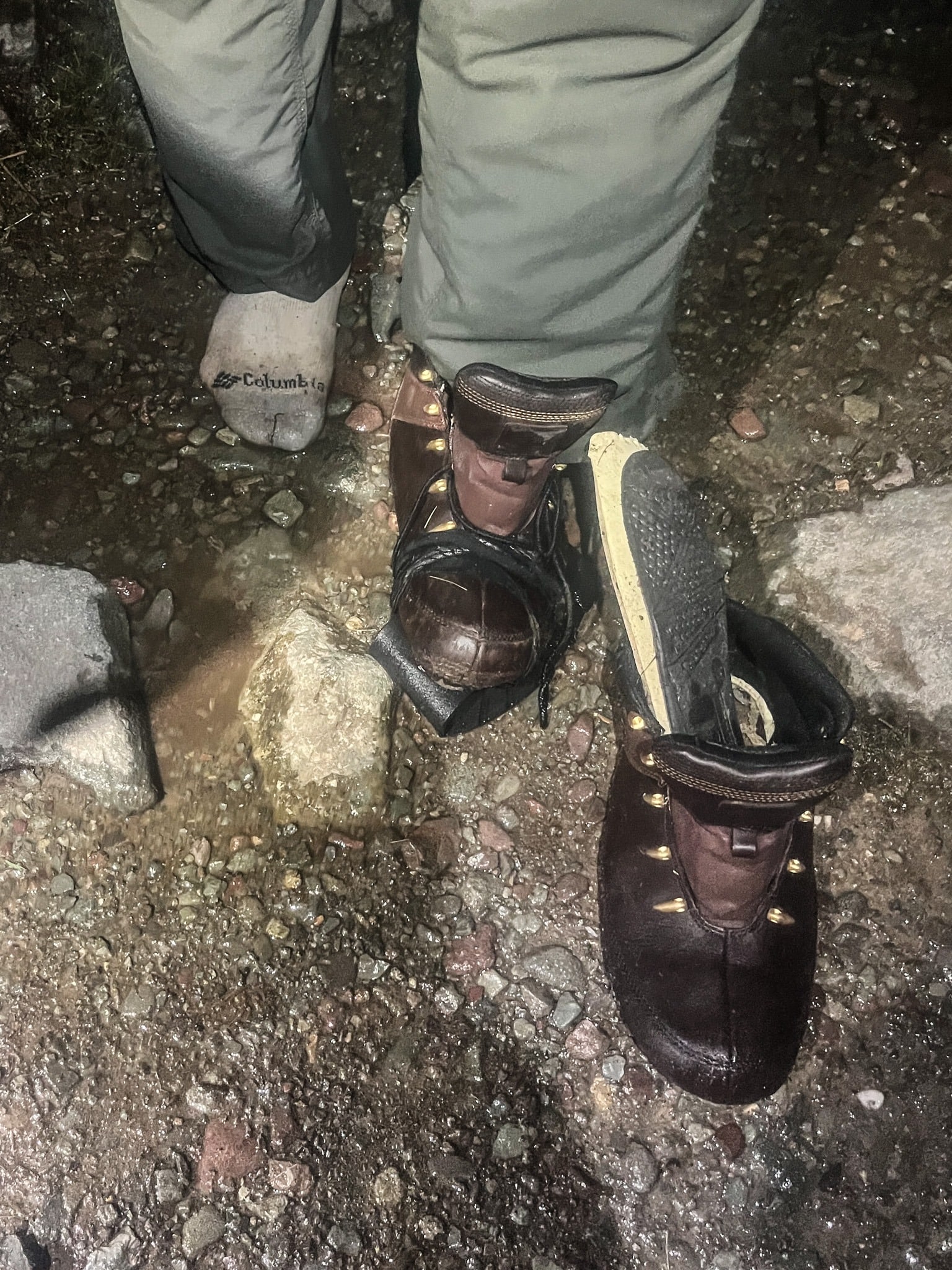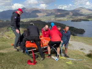 A walker descending was from Sca Fell Pike when his boots fell apart. He was now walking in bare feet and getting cold. The team had a brief wind-interrupted phone call with the casualty and managed to establish that the party was still moving. A Phone Find located the group what is termed the ‘1000ft boulder’. A small team set off with spare boots and found the party well below Stockley Bridge. They were walked back to their vehicle at Seathwaite Farm.