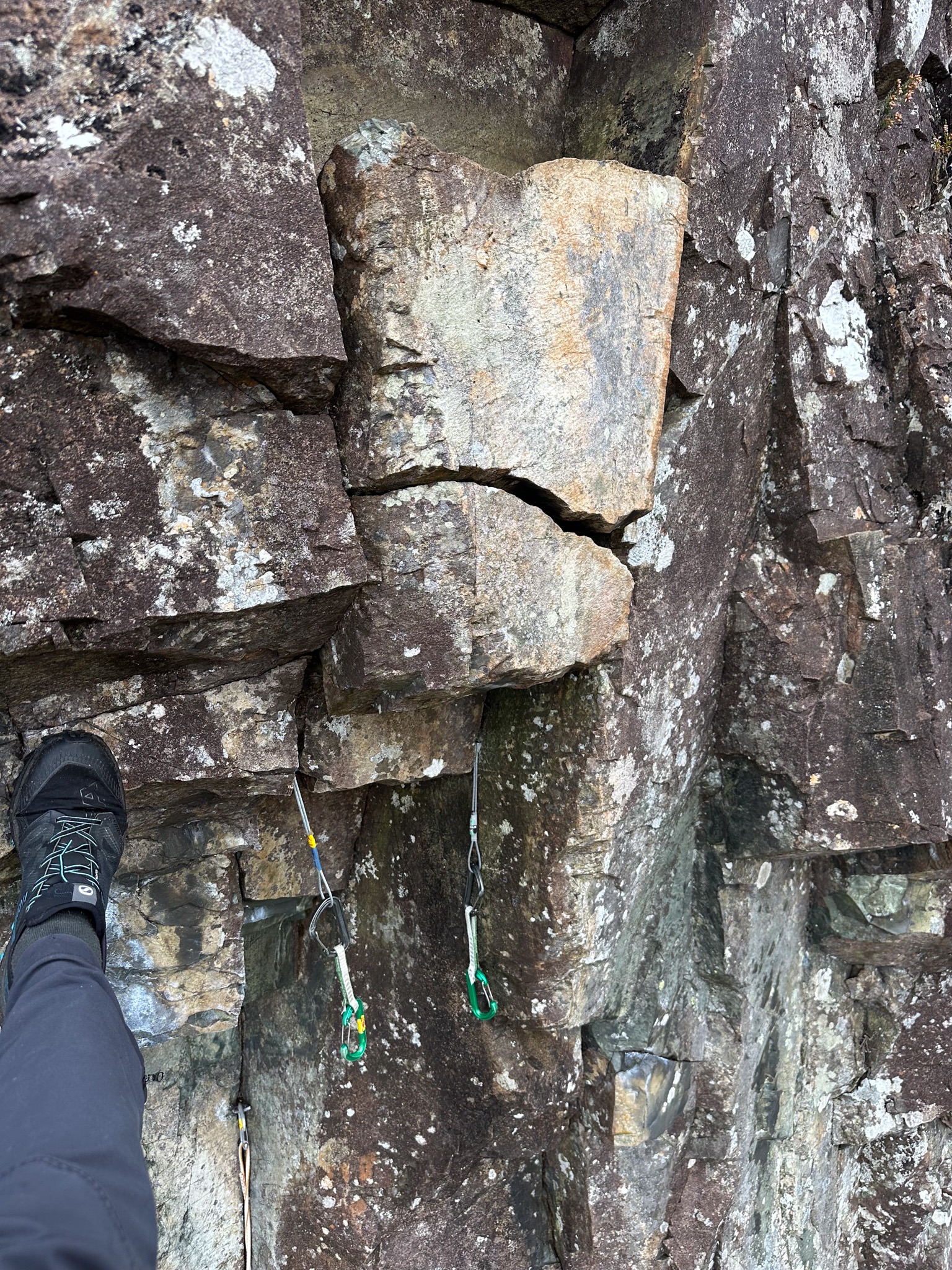 Subsequently a small team returned to Black Crag to abseil down and retrieve the gear that had been left and also assess the climb. Another large loose block remains and the climb is considered dangerous. Climbing websites and press have been informed to get the message across to the climbing community.