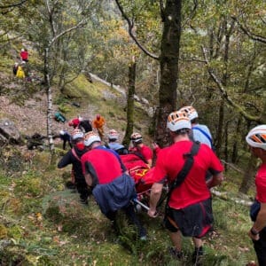 A lead climber on The Shroud, a VS rock climb on Black Crag in Borrowdale, was pulling up on an overhang when the block he was hanging on came off and the man fell. The falling rock missed the man but hit his female belayer on the ledge some 5-6m below causing significant injuries. Another climber at the bottom of the crag caught a glancing blow from the block but was largely unhurt. The man was able to tandem abseil down to the base of the crag with his belayer as the team arrived on scene. Medics from Keswick MR and GNAAS Helimed 58 assessed and treated the casualties before stretchering the belayer down to the helicopter for onward transfer to hospital. A Coast Guard helicopter had also been requested in case a winch from the crag was required but was stood down.