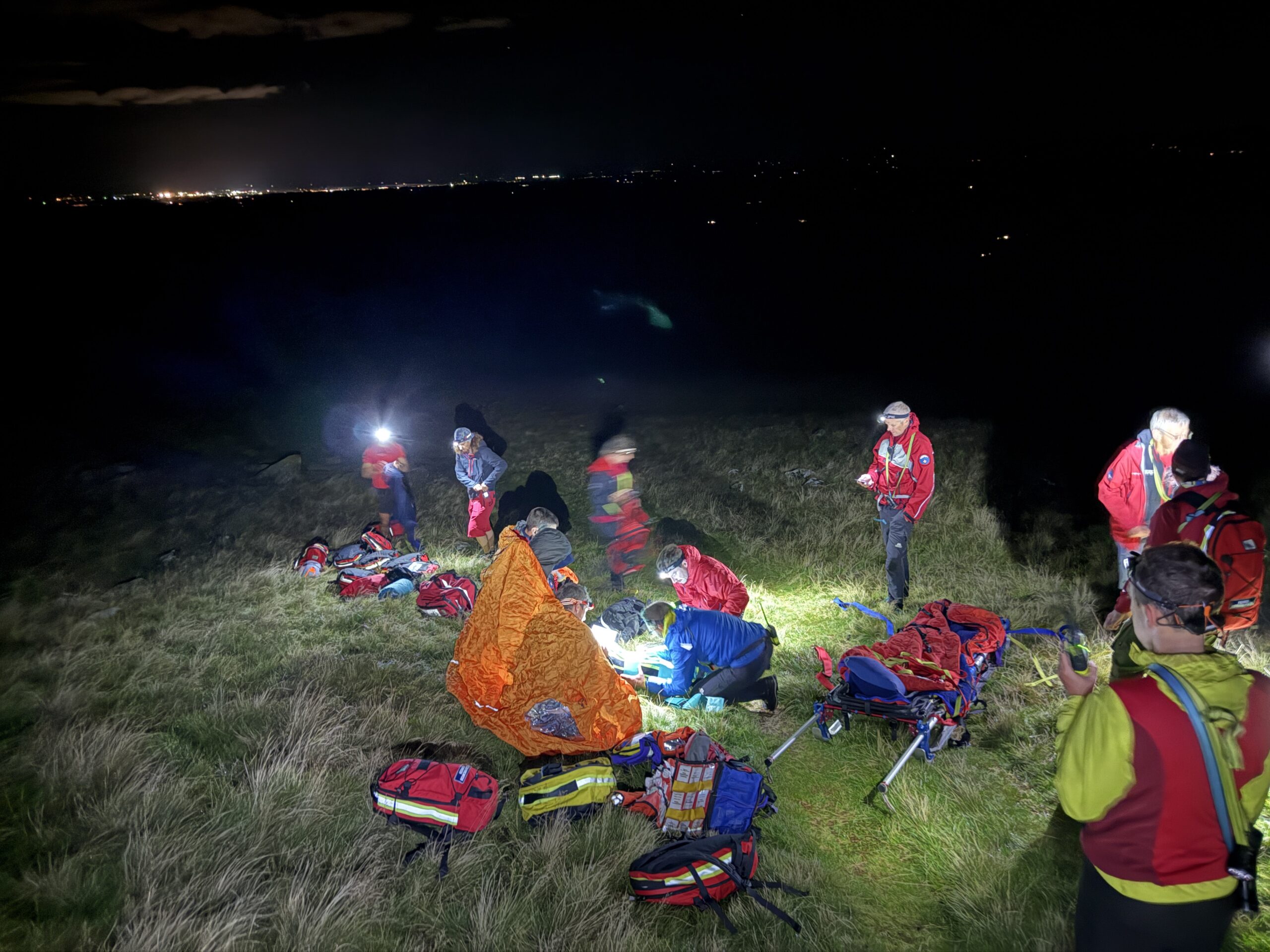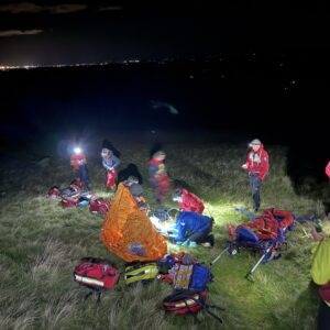 Descending Carrock Fell after an evening walk out with two friends a man sustained a painful knee injury. Having made an attempt to support their friend down the hill the group realised they weren’t making any progress and requested Mountain Rescue assistance. On arrival the man’s knee was assessed by team medics who provided pain relief and splinting to the leg. The casualty was then stretchered off the hill for onward transport to have the injury assessed at hospital.