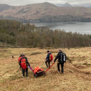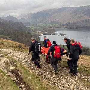 A 47 year old man was out for an early morning walk above Falcon Crag with his camera when he suddenly felt unwell and was unable to continue. Lack of clarity over the precise location meant the team approached from both Ashness and from Rakefoot Farm over Walla Crag. The man was assessed and stretchered off back to Ashness and then transported to the rescue base to await an ambulance that took him to hospital for checks.