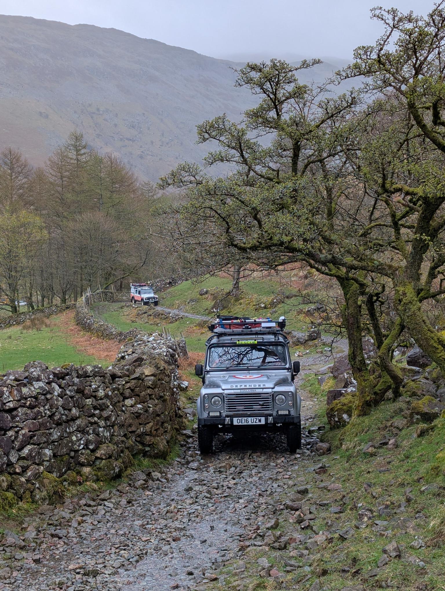 A woman had sustained a bad cut to her knee after a fall on the main Langstrath path. As Keswick team were making their way along the Fairy Glen track to the casualty location, they came across the woman who was being assisted by two friends. After an examination and treatment of the wound the woman was transported by a team Land Rover to the their vehicle, where they made their own way to hospital.