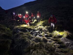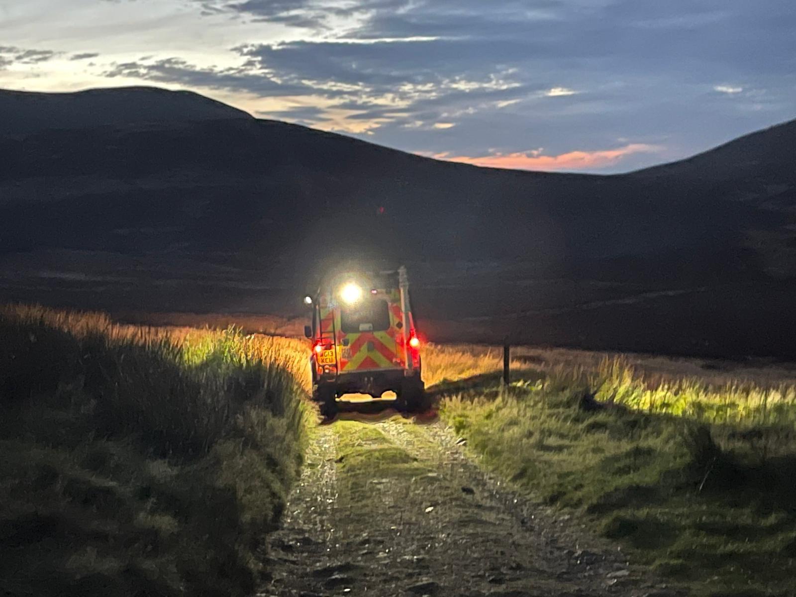 Two walkers became lost at the back of Skiddaw and were directed to Skiddaw House to await rescue. A small team drove a Land Rover up the Whitewater Dash track to locate the missing walkers. As the last dramatic light of the setting sun faded in the western sky the grateful two were driven back to Keswick. Many thanks to Bristol Medical School who were staying at Skiddaw House for the dramatic photos.