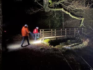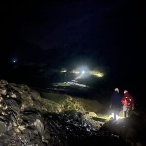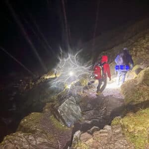 Fallen trees blocked the Borrowdale road, forcing the teams to divert via Portinscale. Splitting into two groups, members approached via Grains Gill and the Sty Head path. The teenagers were located sheltering in the Sty Head stretcher box; they were cold but otherwise unharmed. During the search, the team also located a solo camper near Sprinkling Tarn who required an escort off the hill. All three individuals were safely walked down to Seathwaite and returned to their vehicles.