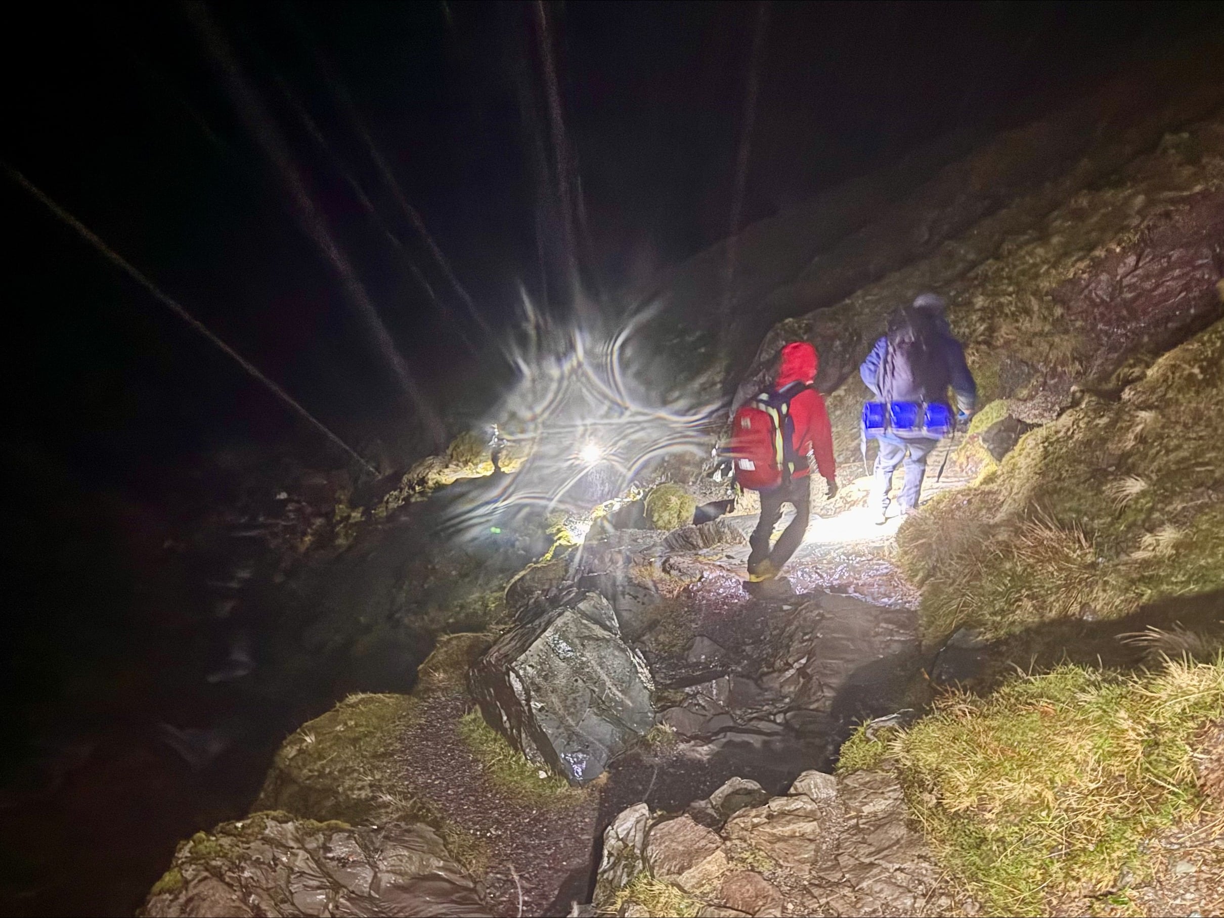 Fallen trees blocked the Borrowdale road, forcing the teams to divert via Portinscale. Splitting into two groups, members approached via Grains Gill and the Sty Head path. The teenagers were located sheltering in the Sty Head stretcher box; they were cold but otherwise unharmed. During the search, the team also located a solo camper near Sprinkling Tarn who required an escort off the hill. All three individuals were safely walked down to Seathwaite and returned to their vehicles.