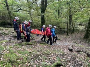 A male mountain biker came off his bike at speed in Whinlatter Forest and suffered facial injuries. A team doctor went directly to the scene and was joined a small team. The team assessed the casualty, gave pain relief and bandaged his badly cut nose before transporting him to the car park from where his wife was able to drive him to hospital.